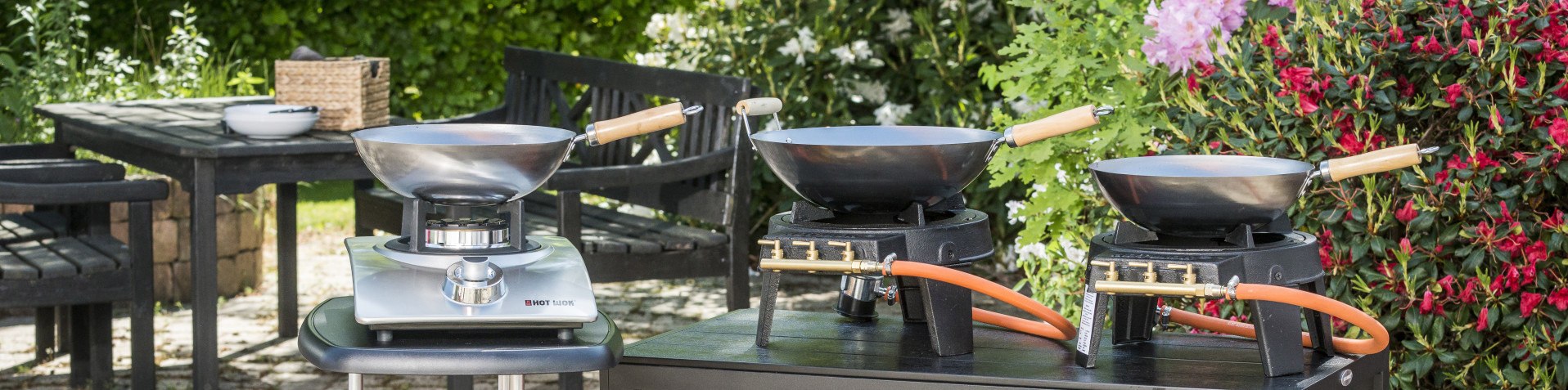 Hot Wok is een leuke uitbreiding voor je buitenkeuken. Naast je BBQ zet je de wokbrander neer met daarop de gietijzeren skillet, pan of