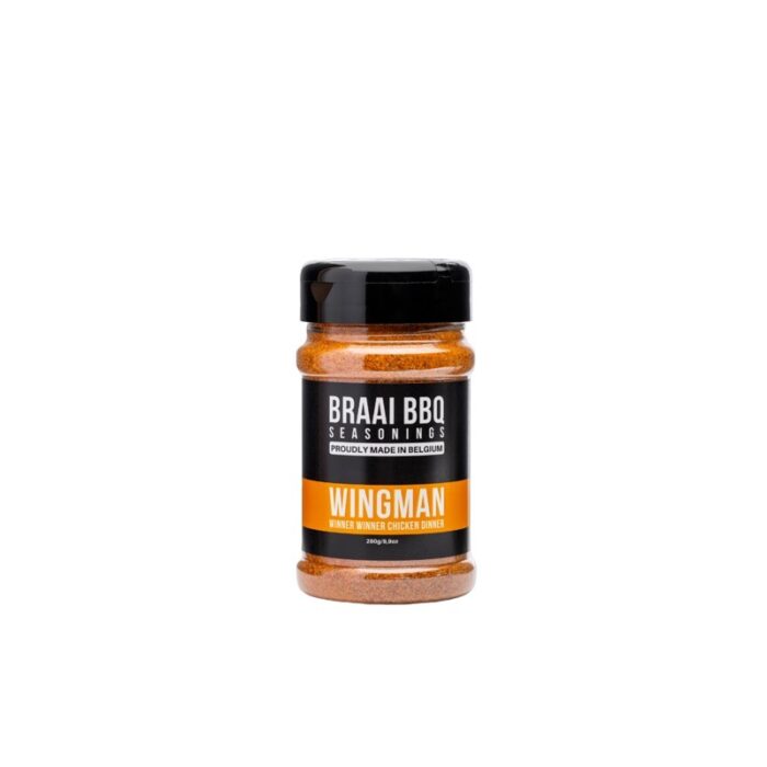 De Wingman BBQ rub van Braai is de ideale buddy voor het gevogelte op de BBQ. Schud de strooibus voor gebruik zodat alle specerijen goed gemend zijn. Breng een dunne laag kruiden aan op je vlees en laat het even intrekken. Daarna je vlees grillen, low & slow smoken of bakken in de pan. Inhoud: 200 gram.