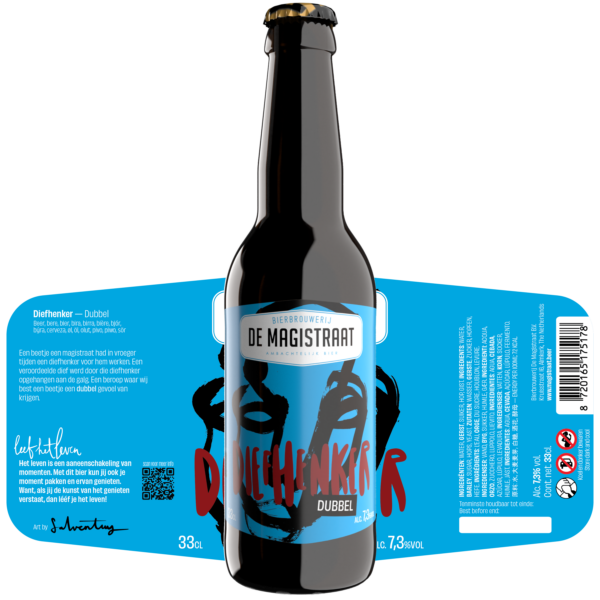 Een donker en doordrinkbaar bier. Dat is De Diefhenker ten voeten uit. Heerlijke aromas van de mouten en gedroogd fruit worden gevolgd door een fijne, lichtzoete, smaak. Volmondig, maar niet te zwaar.
