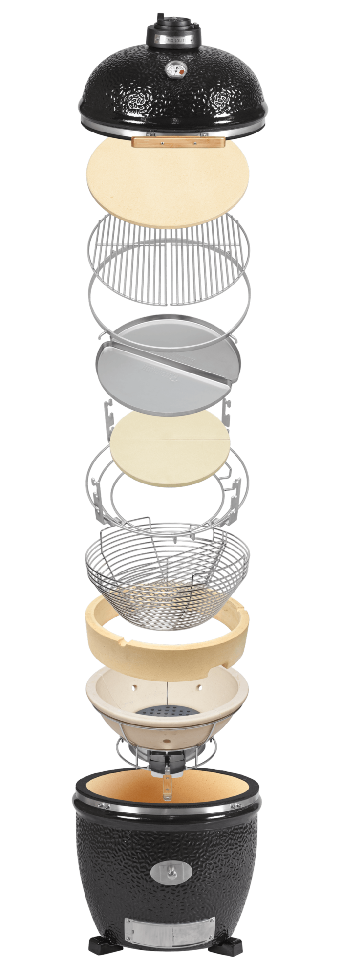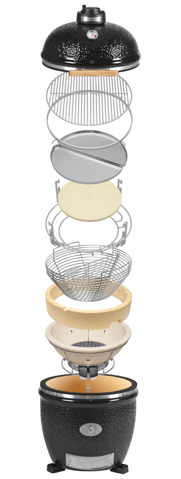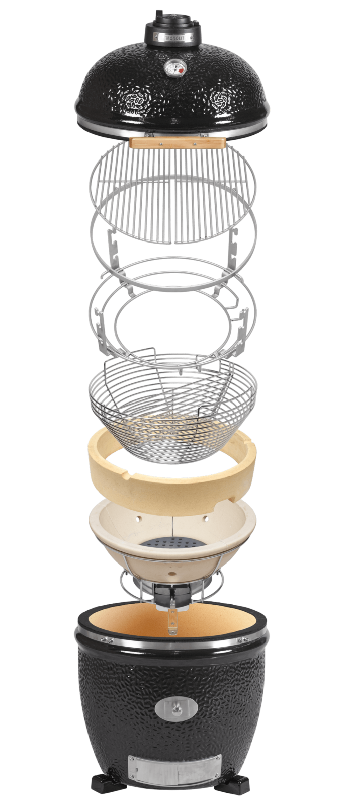 Over het algemeen zijn alle componenten van de Monolith keramische barbecue ontworpen voor een goed luchtdicht systeem. De hoogwaardige en nauwkeurige afdichting en de gietijzeren ventilatiekap zorgen ervoor dat de temperaturen in de keramische barbecue nauwkeurig en zonder schommelingen te regelen zijn.