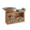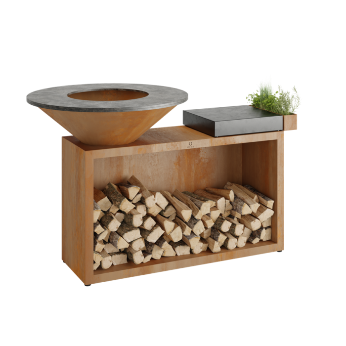 - Materiaal: Corten staal met donker grijs keramisch blad