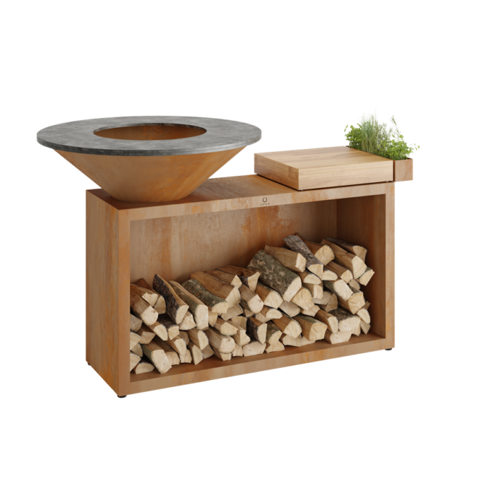 Deze alles-in-één unit combineert een onverslaanbare stijl en functionaliteit in een compact ontwerp. Het OFYR Island biedt alles wat je nodig hebt voor een ultieme outdoor kookervaring met vrienden of familie. Het bevat een OFYR kooktoestel van 85 cm met houtopslag, een werkblad en een handig accessoirebakje voor keukengerei en specerijen. Het werkblad is verkrijgbaar in teakhout of donkergrijs keramiek.