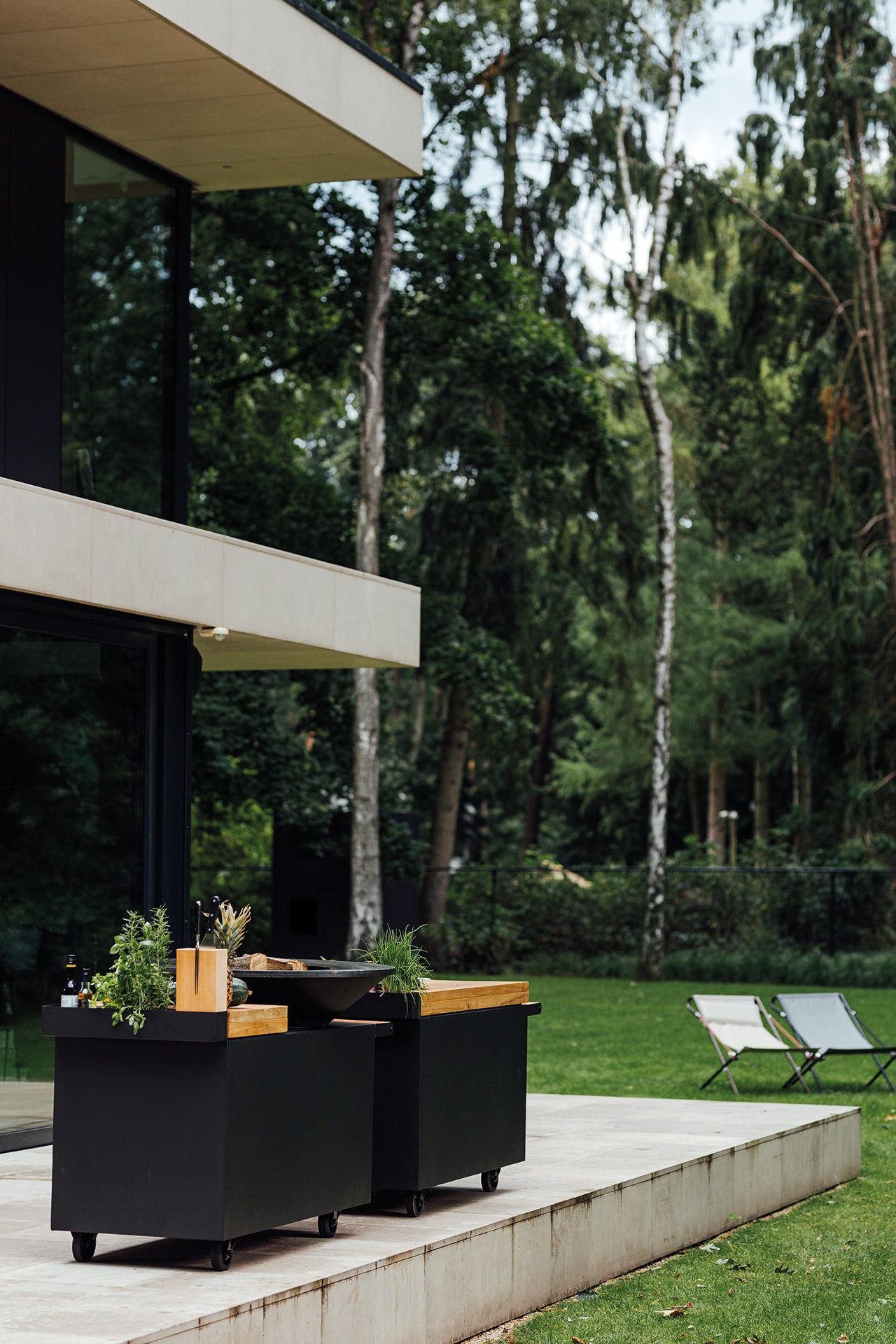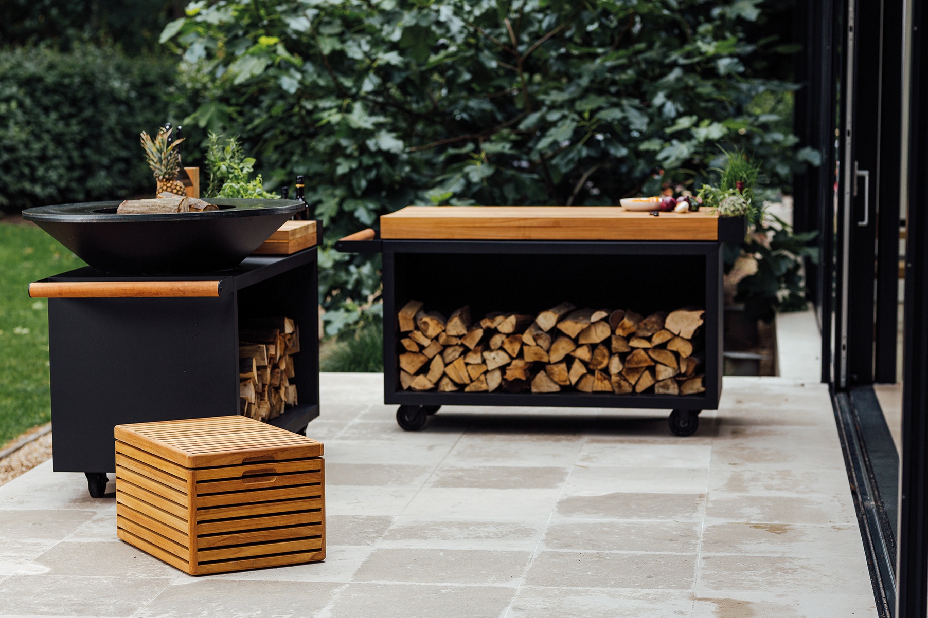 De OFYR Island PRO is de mobiele versie van de OFYR Island 100-100, uitgevoerd in black en met een diepere basis. De Island PRO is geschikt voor gebruik op geplaveide oppervlakken. Het bestaat uit een stevig snijblok om voedsel op te bereiden en een handige houder voor accessoires. Onder het werkblad is een opslagruimte voor hout. Het snijblok is verkrijgbaar in teak hout en donkergrijs keramiek. De plank van teak moet u na gebruik binnenshuis opbergen, de plank van keramiek mag altijd buiten blijven.