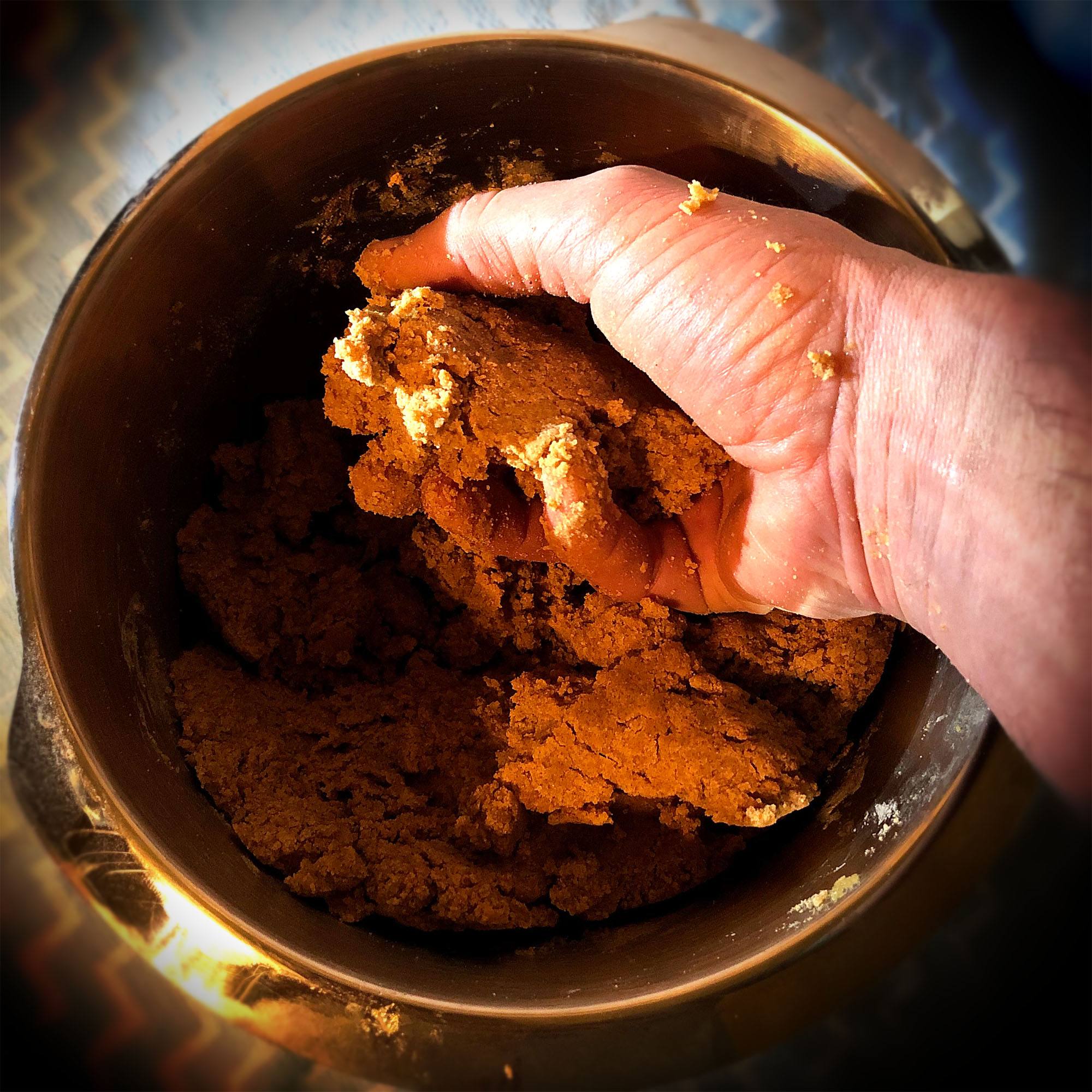 Kneed het ontstane deeg tot één vast geheel en pak het in met huishoudfolie. Laat het dan enkele dagen tot weken liggen om tot een lekkerder resultaat te komen.