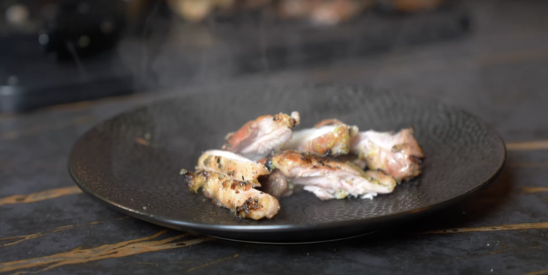 Nu heeft de kip ongeveer 3 uurtjes kunnen marineren en staat de kamado op ongeveer 225 graden. De kip gaan we nu lekker aan grillen op het gietijzeren rooster. Zorg ervoor dat de kip lekker is gekaramelliseerd en een krokant laagje heeft. Wanneer de kip mooi aan gegrild is, laten wij hem nog even mooi doorgaren op de indirect opstelling. Wanneer de kip na ongeveer 7 minuten is door gegaard kan je mooi op je bord presenteren.