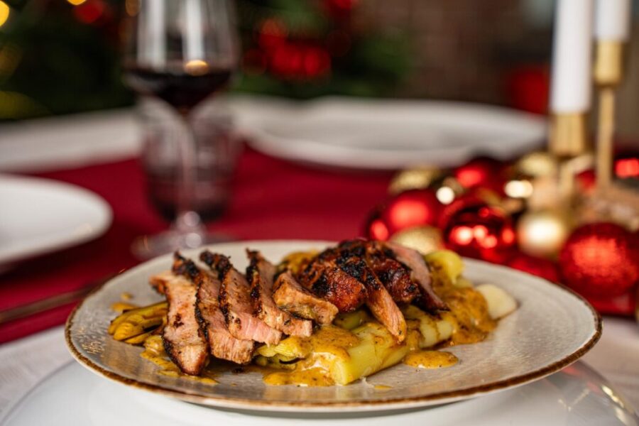 Je steek de barbecue aan en brengt deze naar een temperatuur van 200 graden. Vervolgens plaats je het half directe/half indirecte systeem. Daarna giet je de azijn in de skillet en voeg je de suiker toe. Hierna snijd je de gember in plakjes, plet de knoflook, kneus de jeneverbessen en voeg deze samen met het stukje Spaanse peper aan de azijn toe. Verwarm dit mengsel tot de suiker is opgelost. Haal de skillet van het vuur zodra de suiker is opgelost. Let wel op de skillet word erg warm in de kamado dus gebruik handschoenen als je de skillet uit de kamado haalt.