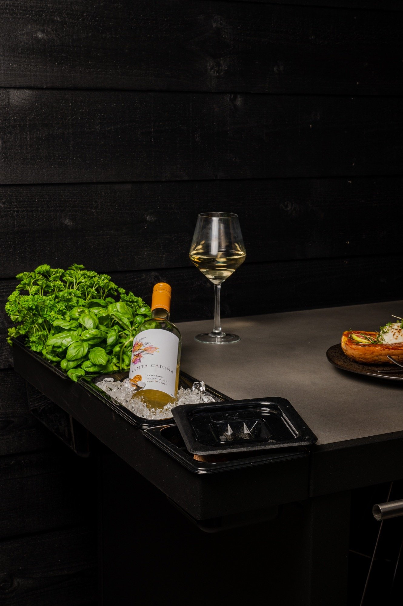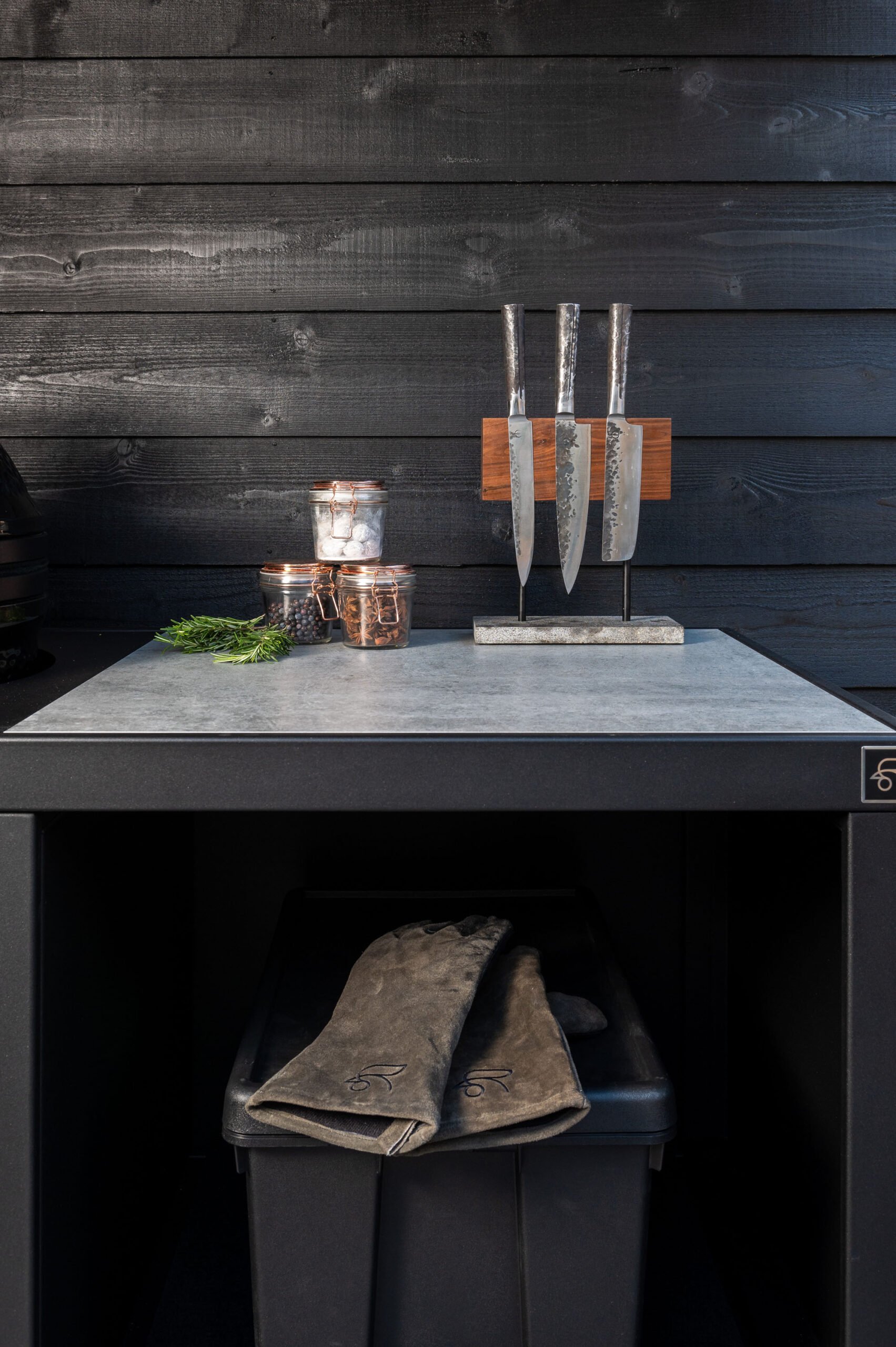 Maak je buitenkeuken compleet door bijvoorbeeld handige mise en place bakjes toe te voegen waar je ingredienten makkelijk in bewaard. Een haken set waar je je gereedschap aanhangt. Een deurtje is mooi om toe te voegen om een strak uiterlijk te behouden maar wel veel producten achter op te kunnen bergen. Warme accessoires leg je op een geintegreerd rooster (onder je BBQ bijvoorbeeld), en dankzij het geïntegreerde vilt leg je alles veilig neer zonder krassen.