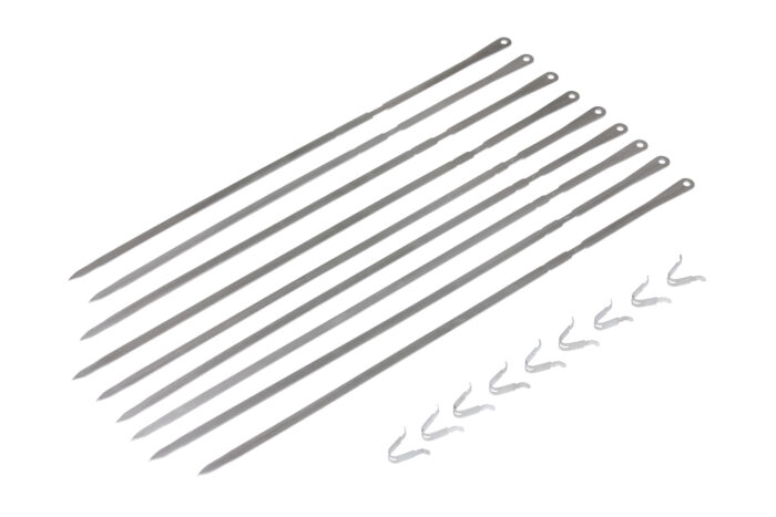 Met de roestvrijstalen spiesenset voor de Monolith rotisserie wordt je keramische barbecue een mangal- resp. een churrasco-barbecue. Grill gelijktijdig tot op 7 (Classic) of 9 (LeChef) spiesen jouw shaslick, Braziliaans vlees, groente of kebab. Door de motor en de speciale aandrijving van de rotisserie draaien alle spiesen gelijktijdig!