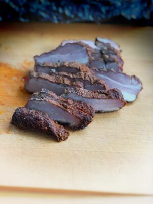 Van een stuk buikspek met zwoerd maak ik het liefst Pancetta van het spit. Door het vlees te vlinderen creëer je meer oppervlakte om te kruiden en wanneer je deze oprolt en opbindt.